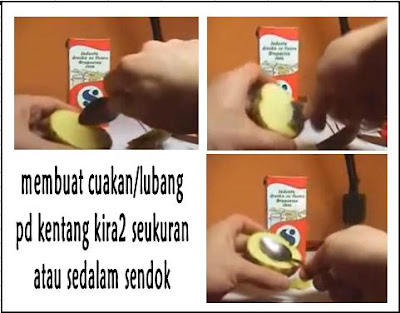 Suatu metode yang sangat sederhana: cara membuat nyala api hanya menggunakan bahan-bahan yang mudah didapat (kentang, pasta gigi/odol, garam, tusuk gigi/lidi, kabel dan kapas).